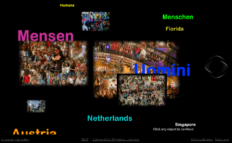 A new presentation opens and you can see a hole which moves over a composition of hundreds of pictures of people of the chosen country: