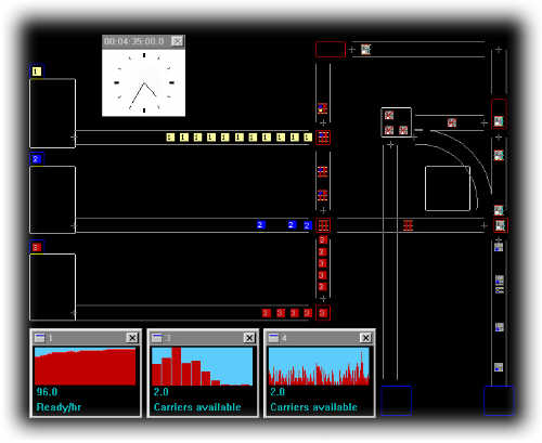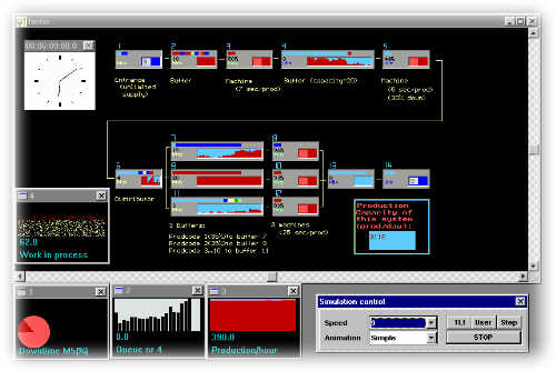 - Durch die Simulation realer Auftragsabwicklung können Engpässe, Überkapazitäten